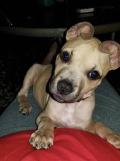 Os cachorros resgatado tinham vários tons de pelagem bege, com orelhas grandes e eretas, exceto a canela, que tem as orelhas enroladas para o alto da cabeça. E esse detalhe tornou o filhote um verdadeiro xodó por onde passa.